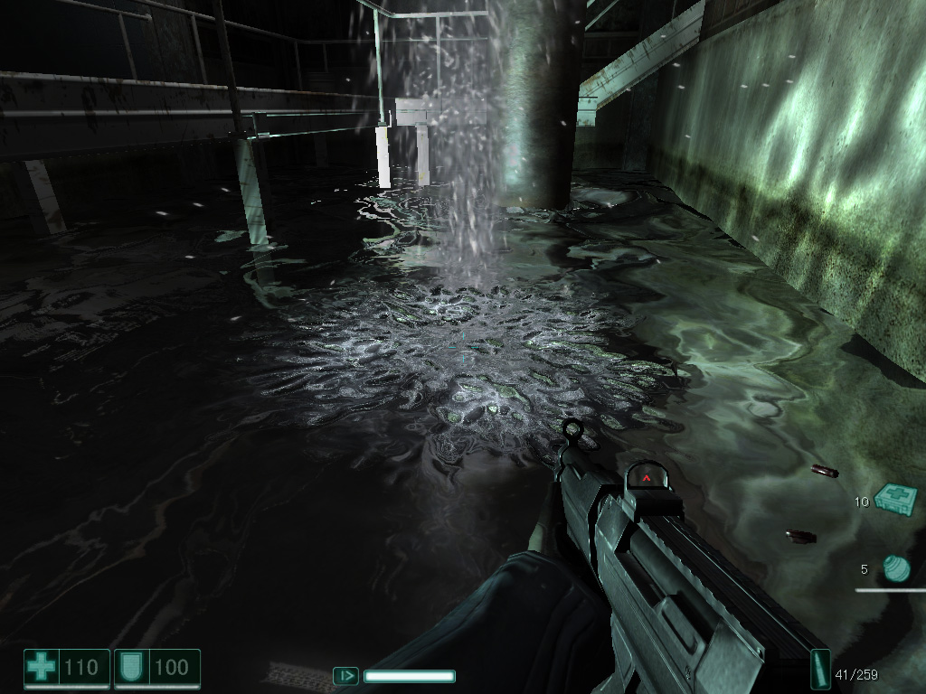 左は「Half Life2: Lost Coast」,右は「F.E.A.R.」より。水面のさざ波表現では,そのさざ波の波動シミュレーションまでがピクセルシェーダによって行われている