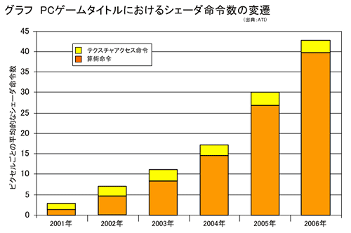 ピクセルシェーダユニット増強が優先されたのは,こうした流れに呼応したものなのである。