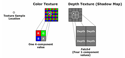 具体的には,これまで4要素(α/R/G/B)テクスチャの参照のみに特化していたテクスチャユニットを,ある1要素を同時に4個参照できるようにもしたというのだ。