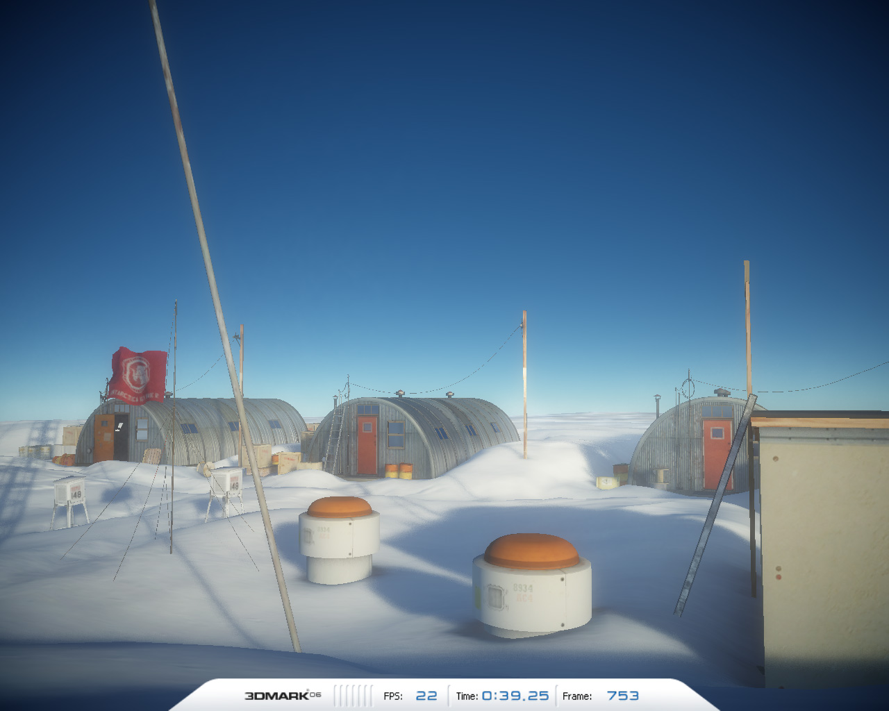 3DMark06の「HDR/SM3.0 Test 2」である「Deep Freeze」より。シーン内の影はシャドウマップ技法によって生成されている