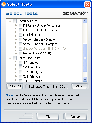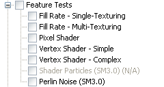 Radeon X1000シリーズだと,Shader Particlesのテストはグレーアウトして選択できない