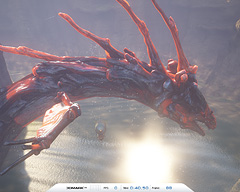 | ほぼ同一のシーンで3DMark05(左)と比較してみた。3DMark05だと硬い質感の水棲怪物だが,3DMark06(右)だと,ゼリーっぽい,柔らかな感じになっている | |