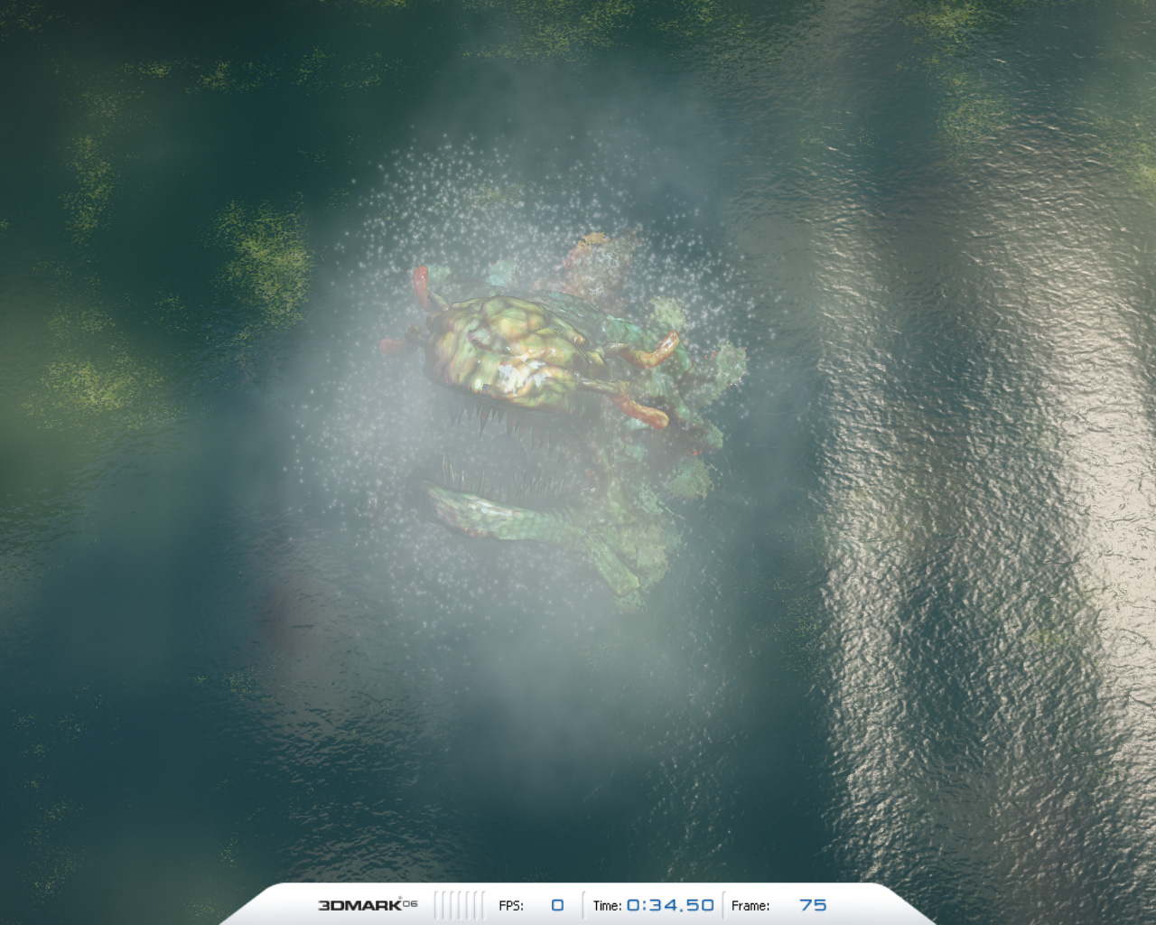 また,水の透明度が低い様子や水面下を泳ぐ水棲怪物が沈み込んでいる様子を表現するために,3DMark05と同じく「深度フォグ」(Depth Fog)処理を適用しているのも,3DMark06の特徴だ。