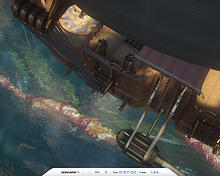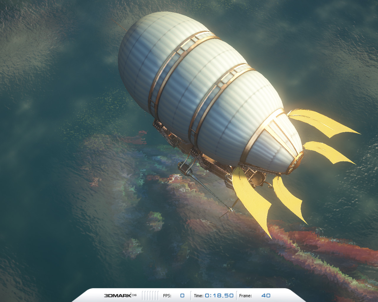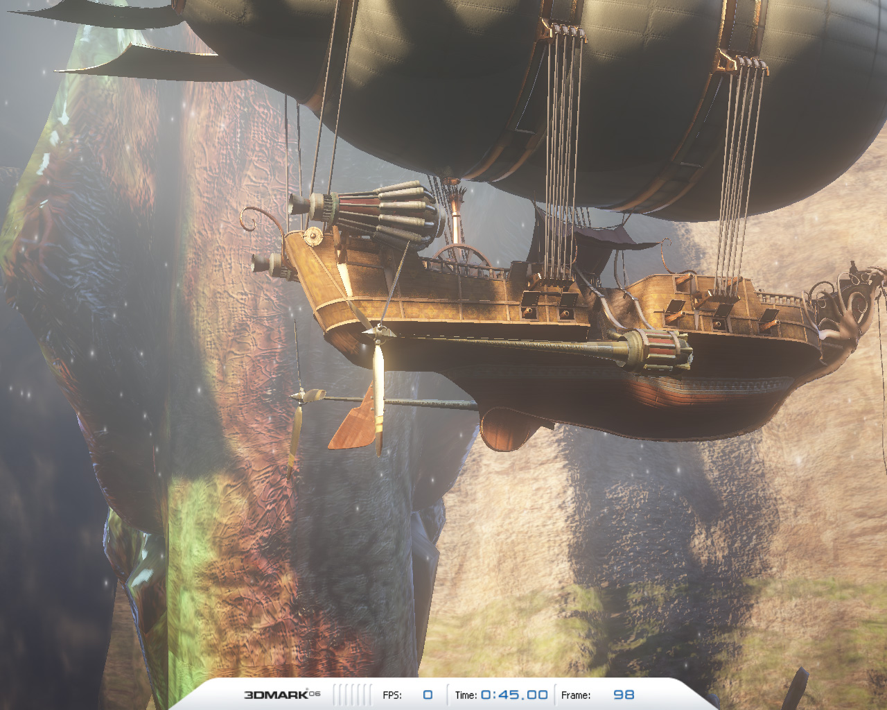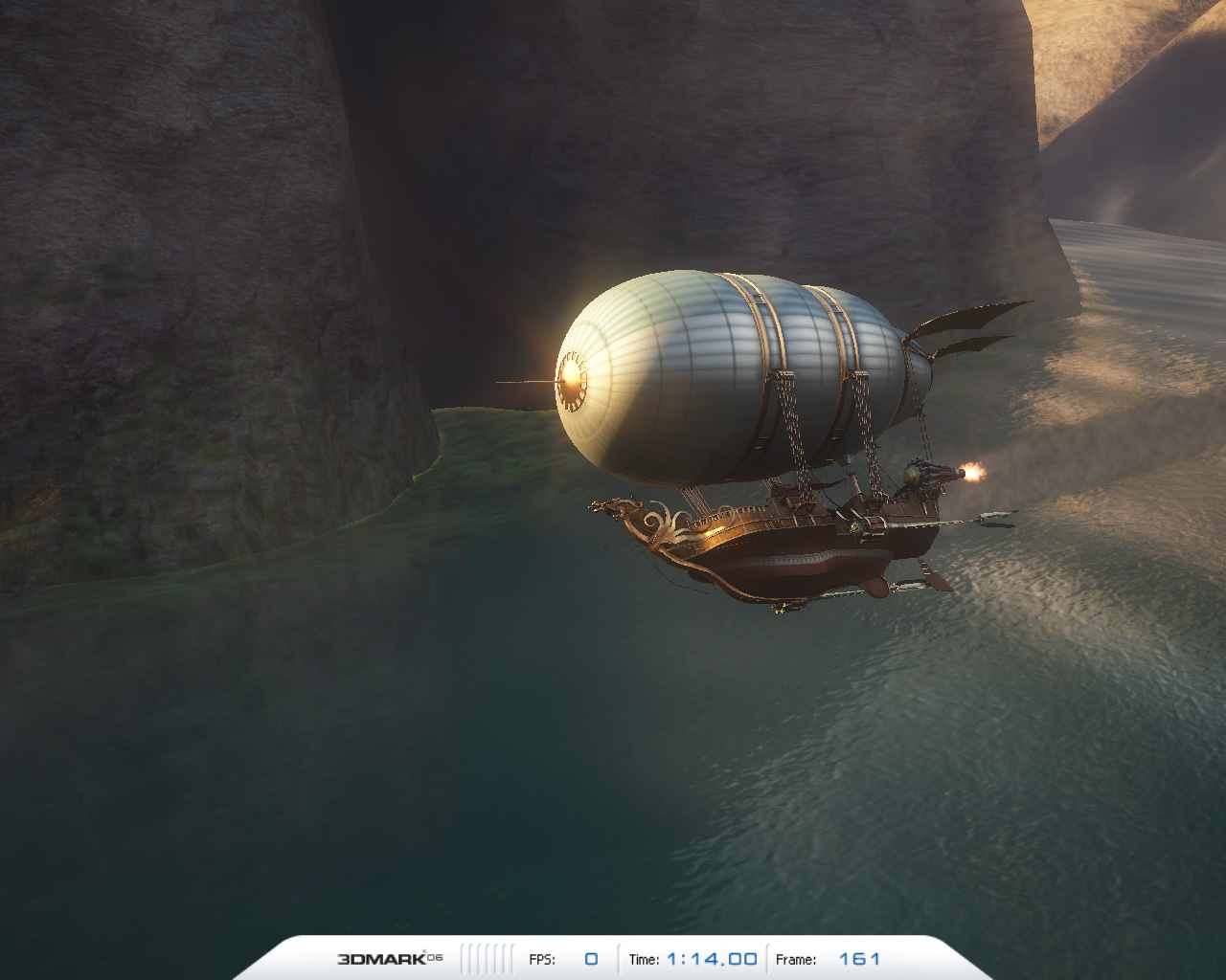 渓谷に住む水棲怪物が飛行船に襲いかかるも,この攻撃をなんとかかわし,非常エンジンに点火して脱出を試みる。このシーンも3DMark05からの持ち越しだ。もちろん,3DMark05とまったく同じではなく,やはり3DMark06の新しい3Dエンジンで動作している。また,このテストで用いられるシェーダプログラムはSM3.0ベースとなり,さらにHDRレンダリングは,SM3.0世代のグラフィックスチップでサポートされるHDRレンダリング支援機能をフル活用するようになっている。