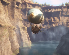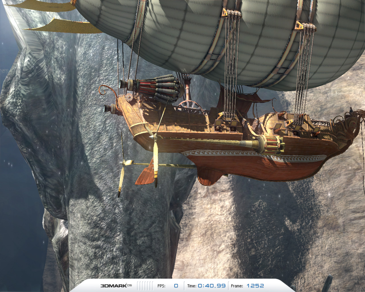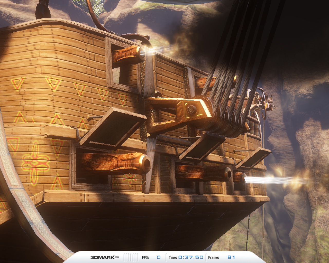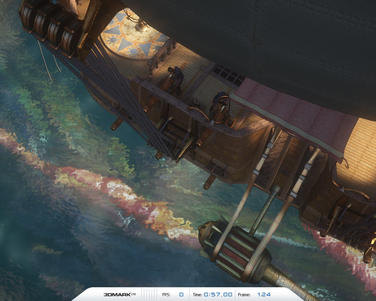 渓谷に住む水棲怪物が飛行船に襲いかかるも,この攻撃をなんとかかわし,非常エンジンに点火して脱出を試みる。このシーンも3DMark05からの持ち越しだ。もちろん,3DMark05とまったく同じではなく,やはり3DMark06の新しい3Dエンジンで動作している。また,このテストで用いられるシェーダプログラムはSM3.0ベースとなり,さらにHDRレンダリングは,SM3.0世代のグラフィックスチップでサポートされるHDRレンダリング支援機能をフル活用するようになっている。