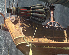 | 3DMark05(左)と3DMark06(右)で,ジャギーの出方を比較してみた。飛行船のエンジンの影に注目すると,左で確認できる強いジャギーが,右にはないのが分かる | |