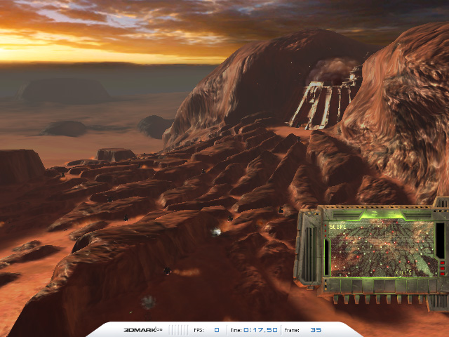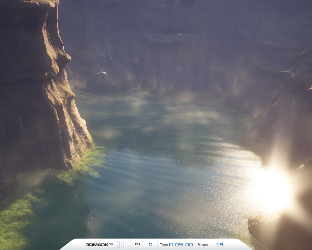 Canyon FlightもSM2.0 Graphics Test 2のFireFly Forestと同じ屋外シーンだが,こちらは視点がより広範囲の3D世界を捉えるようになっており,フライトシミュレータのような,壮大なスケールの情景をそのままに描き出す「エピックスケール」(Epic Scale)描写を行うゲームを想定したシーンといえるだろう。