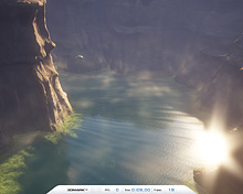 第1回で説明したように,Canyon Flightで,HDRレンダリングはFP16-64ビットバッファに対して行われている。さらに,映り込み表現などに用いる動的な環境マップテクスチャにもFP16-64ビットテクスチャが用いられているのだ。水面に映りこんだ情景までもがHDRのライトブルーム(光の溢れ出し)を起こしているのは,その成果である。