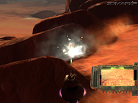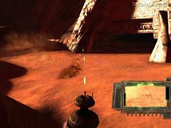 | これも左が3DMark05で右が3DMark06。砲身の影や背景の崖の影が3DMark06では柔らかなソフトシャドウ表現になっている | |