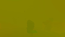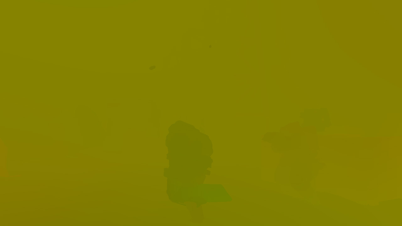 | 2.5Dモーションブラーなしの状態で通常レンダリングしたフレーム(左上)と,このシーンの深度情報(右上),ベロシティマップ(左下),ベロシティマップの深度情報(右下)。2.5Dモーションブラーの実行に当たっては,左上のフレームに対して,残る3点が参照され,適用されることになる |