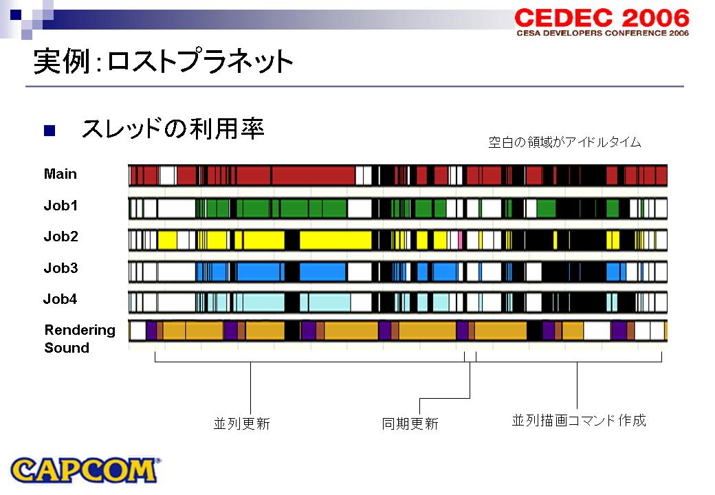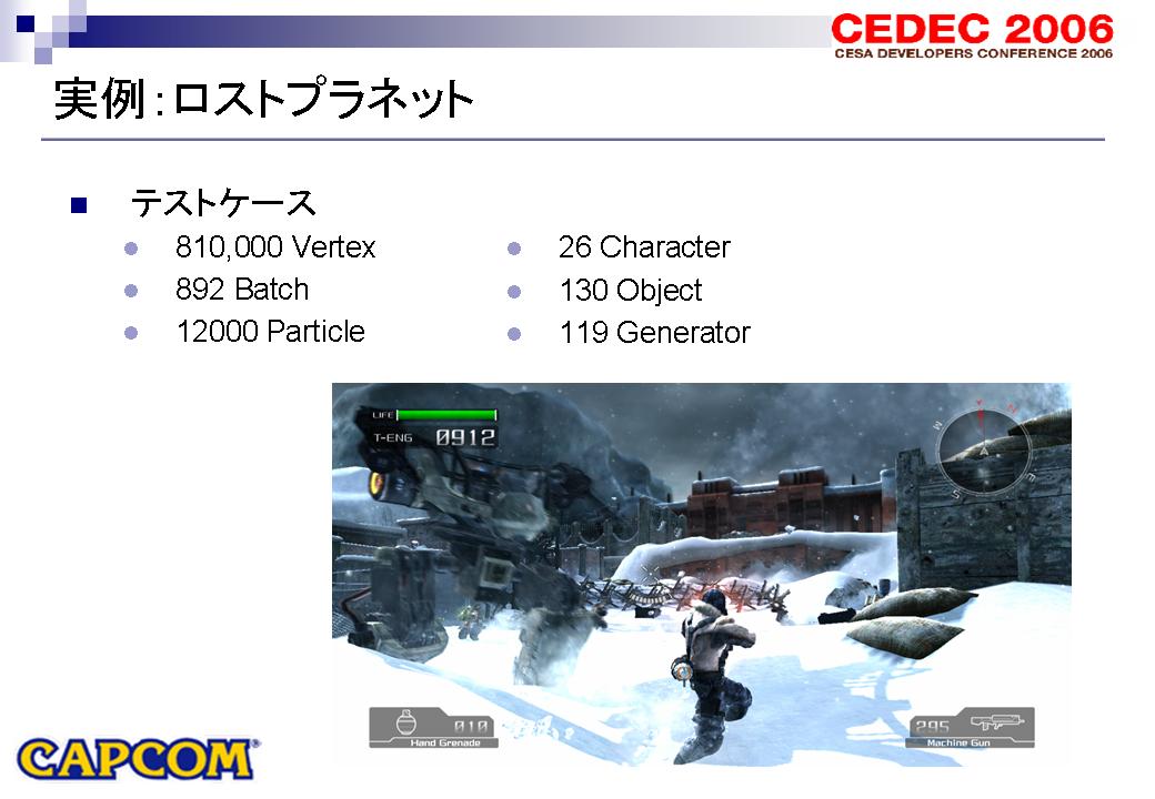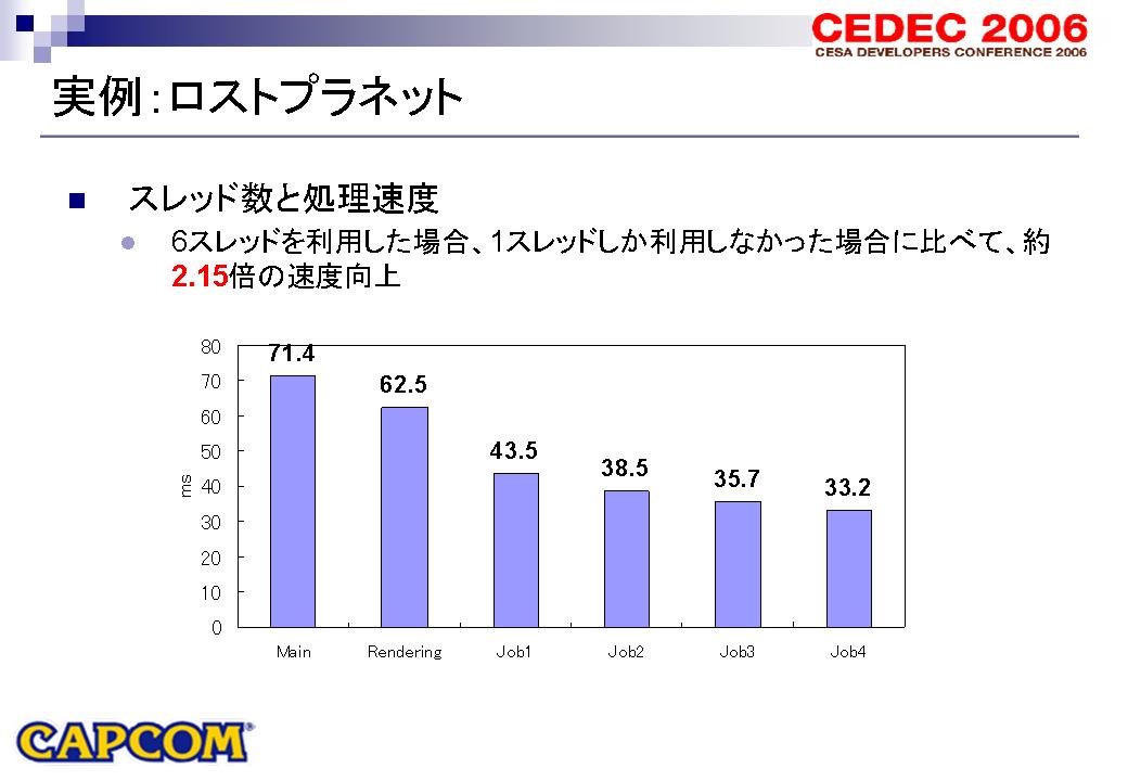 | Xbox 360版「ロスト プラネット」でのマルチスレッドパフォーマンスに関するスライド |