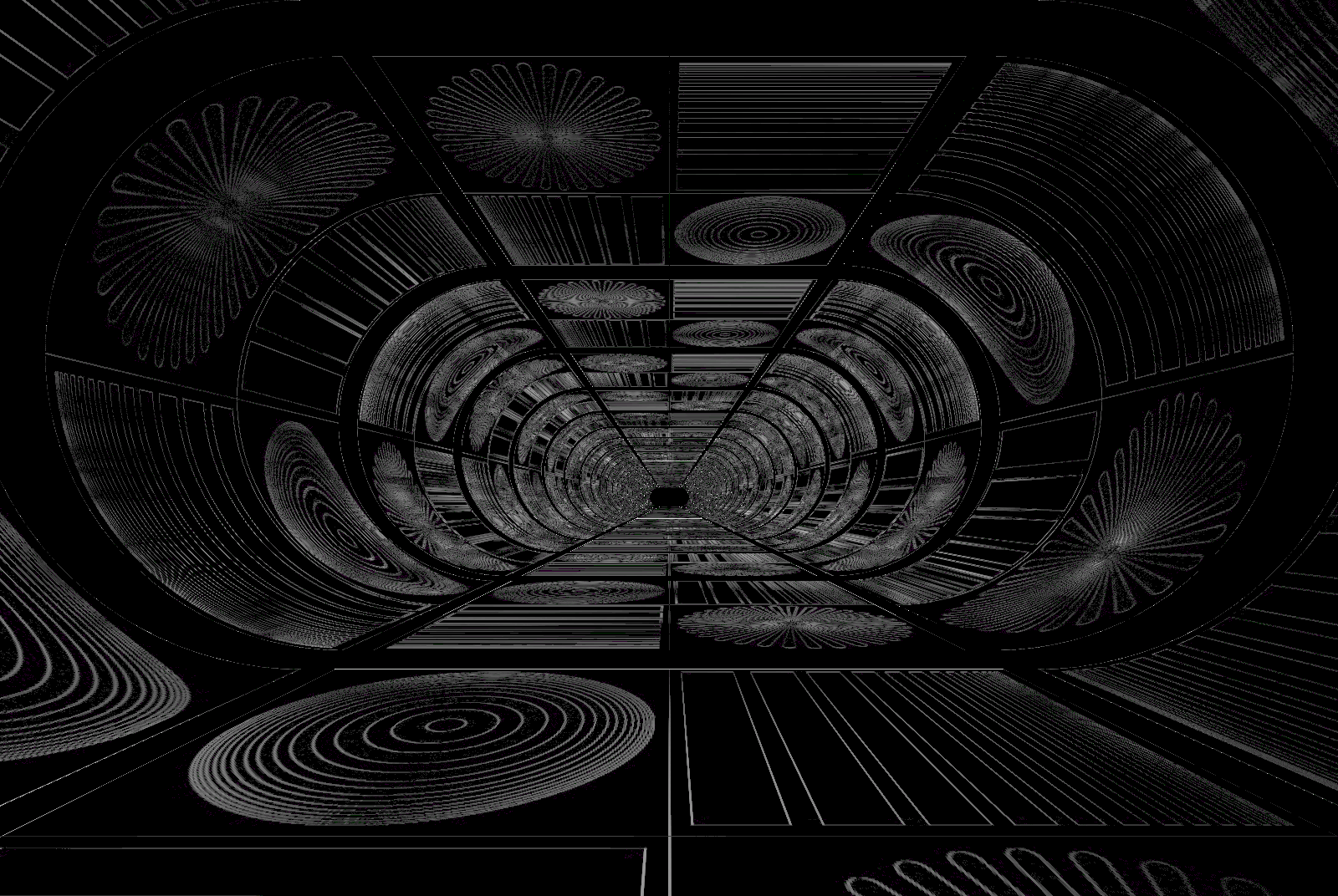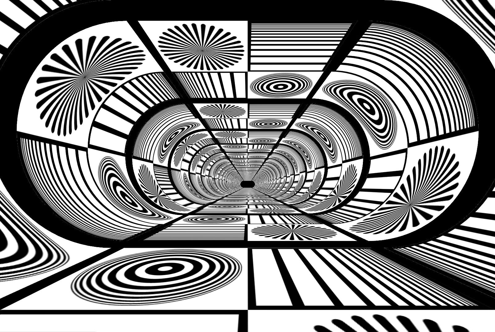 視点はトンネルの中心にあって出口方向を見据えているので,色分けされたMIPMAPが同心円状にトンネルに現れなければならない。