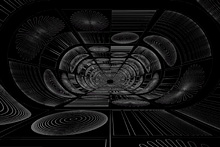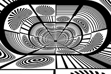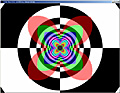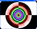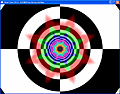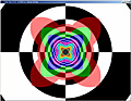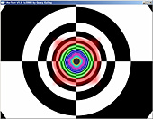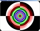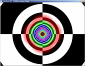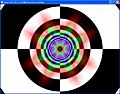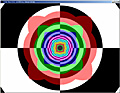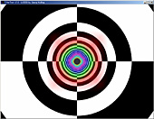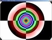 このテストプログラムは,各縮小レベルを"あえて"異なる単色で塗りつぶしてしまったMIPMAPを用いて異方性フィルタリングを行うというもの(MIPMAPの意味や構造についての詳細は前回を参照のこと)。これを奥に伸びるトンネルの壁に対してマッピングしていく。
