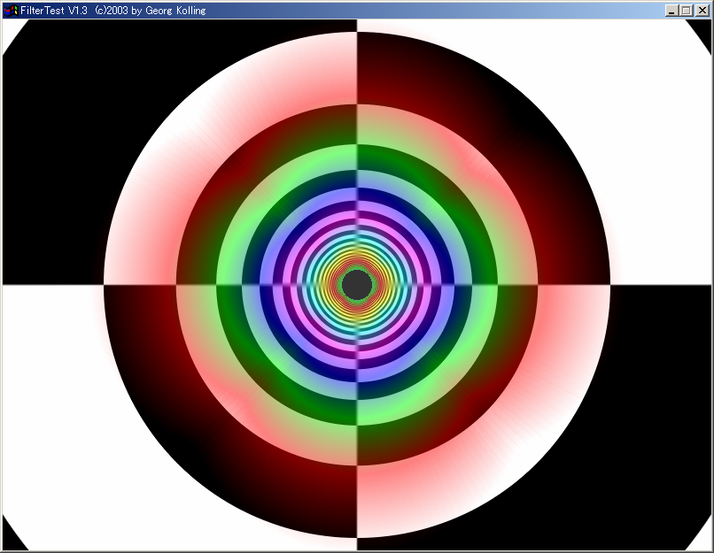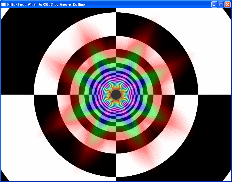 ほぼ同心円状に色分けMIPMAPが適用されていることが見て取れる。