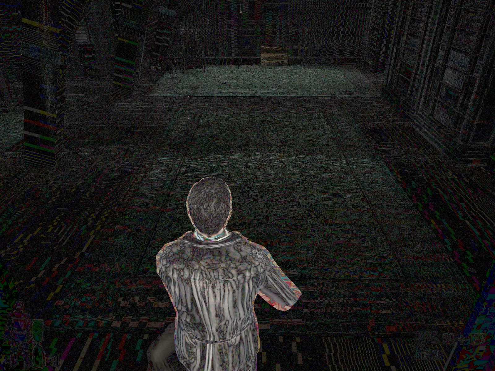| MAXPAYNE2のショットの差分。主人公のMAX PAYNEは常に多少動いているので,彼の体の形状はほぼ,そのまま差異として出力されてしまう。よって,この部分は無視 |