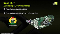 Quad SLIに対応するグラフィックスチップはGeForce 7900シリーズのみ。世界初のQuad SLI用グラフィックスカードには,「GeForce 7900 GX2」が搭載されている。