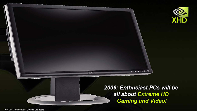 NVIDIAは,Quad SLIの発表に合わせて,具体的にDellの「2407WFP」(24インチ,1920×1200ドット)と「3007WFP」(30インチ,2560×1600ドット)といった液晶ディスプレイをXHD対応ディスプレイとして訴求中だ。まぁ,これはQuad SLIシステムがDellから発売されていることと無関係ではないだろう。