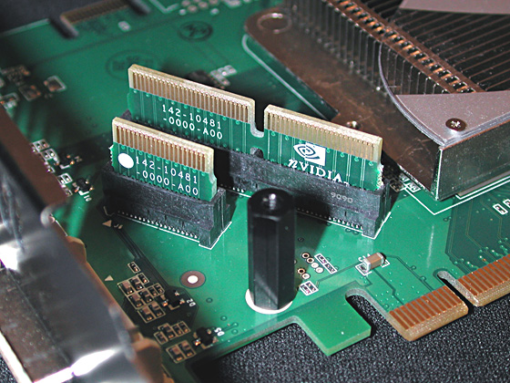 もっとも,NVIDIAが用意したのは,厳密には“2個のグラフィックスチップを,メインとサブ,2枚のカードにそれぞれ搭載して,2段重ねにしたもの”だが。