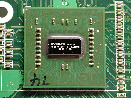 PCI Express x16バスから伝送されてきた描画コマンドや各種3Dデータは,このX48 PCI-Eハブチップを介して,2個のGeForce 7900へ同時発行される仕組みだ。