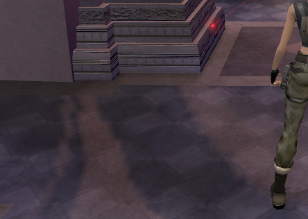 「Low」設定時の床の映り込み。環境マップの解像度が低いためにジャギーが出てしまっている。テクスチャフィルタリングでもごまかしがきかないレベルのギザギザ感だ |