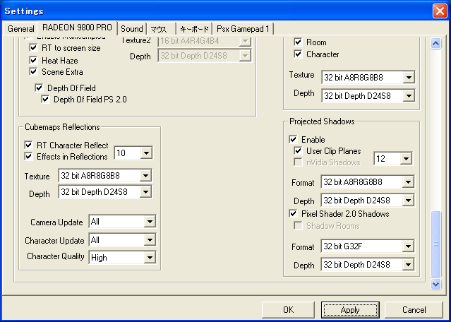 Texture/Depth〜映り込みテクスチャ形式とZバッファ精度の設定