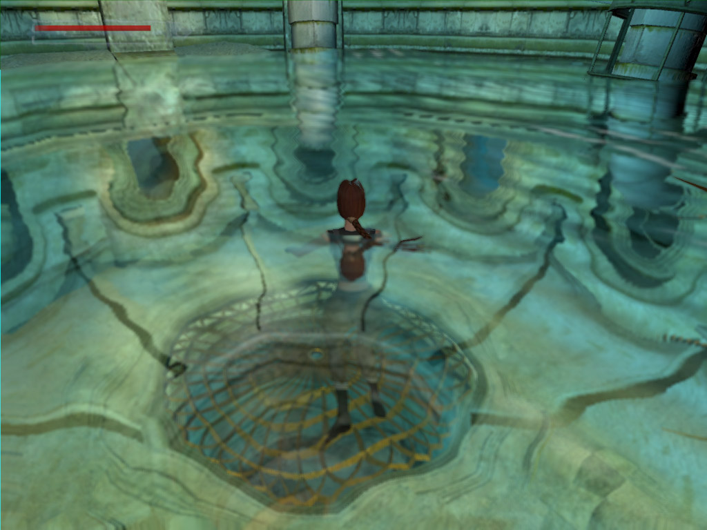 反射(Reflections)と屈折(Refractions)の表現に関する設定セクションだ。反射と屈折は一般的な光学自然現象だが,TR6では主に水面表現のことを意味しているようである(下図参照)。