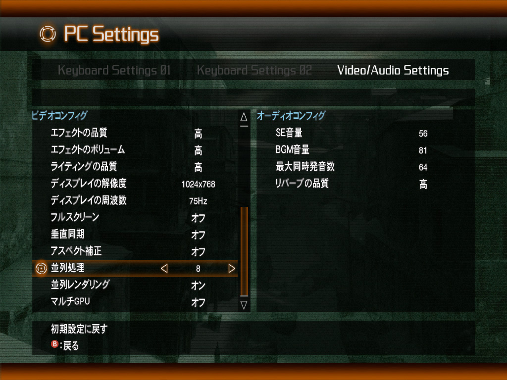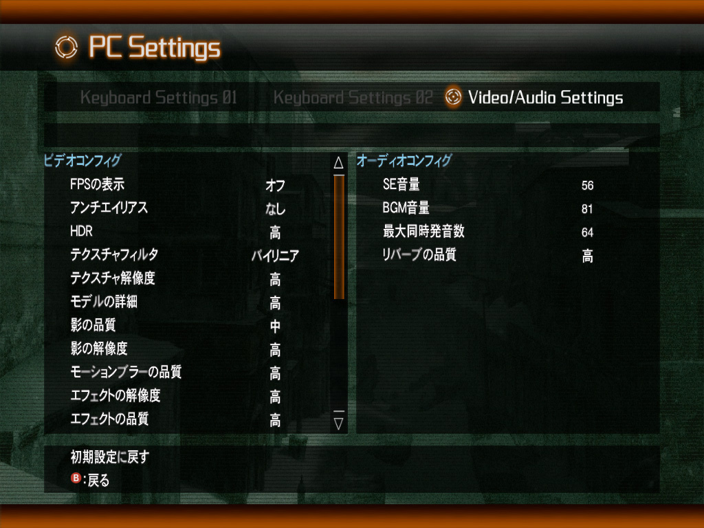 ※ゲーム設定「Video−Basic」「Video-Advanced」以外はすべて標準設定と同じ