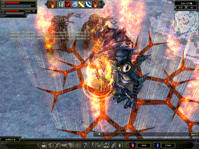 そうです。現在,鋭意制作中です。 あとは個人商店の追加,それとクエストの増量でしょうか。 クエストは,通常のものをさらにボリュームアップするほか「スペシャルクエスト」というものを4から5個ぐらい追加する予定です。なにがスペシャルかというと,クエスト中に動画が流れる点。コンシューマ機で遊べる通常のRPGみたいな感じですね。 4G: ずっと気になっていたのが,以前おっしゃっていた"ソロ"でも楽しめるという部分だったんですよ。現状ではやっぱり騎士団が花形なのかなぁっていう雰囲気になってますし。 小島氏: でも,今でも「血祭り」(※6)なんていうイベントも月一でやってますし,なかなか盛況ですよ。この血祭りは,"ヘルマーシュを血に染めて"っていうサブタイトルの通り,モンスターとの激しい戦闘が繰り広げられて,画面上に見事に地獄絵図が展開してましたね。いやぁ,結構みんな血気盛だなぁっていう。 なので,こういったイベント,そして隔週で騎士団トーナメント,さらに隔週でライブキャストという具合に,プレイヤーが自分のプレイスタイルや接続時間に合わせて遊べるんじゃないかと思ってます。 ちなみに,騎士団トーナメントは「土日だけだと,逆にほかの用事もあってキツイ」なんて意見もあったんで,平日にも開催するのもいいかもしれません。まだ未定ですけどね。 でも,土日に花火大会に行こうか,はたまたA3をやろうかなんて悩んでもらえるのは,とても光栄なことですね。(グッと拳を握り締めて)こんなかんじ(笑)。 ※6……2004年の7月下旬に開催されたイベント。この期間中は,通常よりもモンスターを倒して得られる経験値が増加した。