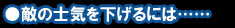 "集団戦"をゲームとして再現している本作でも,"士気の要素"というものが戦闘の結果に重大な影響を及ぼす。士気が下がった兵士達は勝手に戦場から逃げ出し,統率が取れなくなる。敵の士気を崩壊させることができれば,即ちそれが勝利へと繋がっていくわけだ。 このセクションでは,アメコンにおける士気について簡単に解説していく。ただし,システム面・数値面の細かい説明は割愛して,「要するに何をすればいいのか」に絞って解説していきたいと思う。手始めに,どうすれば士気を上げる/下げることができるのか? そこから説明していこう。 ![]()