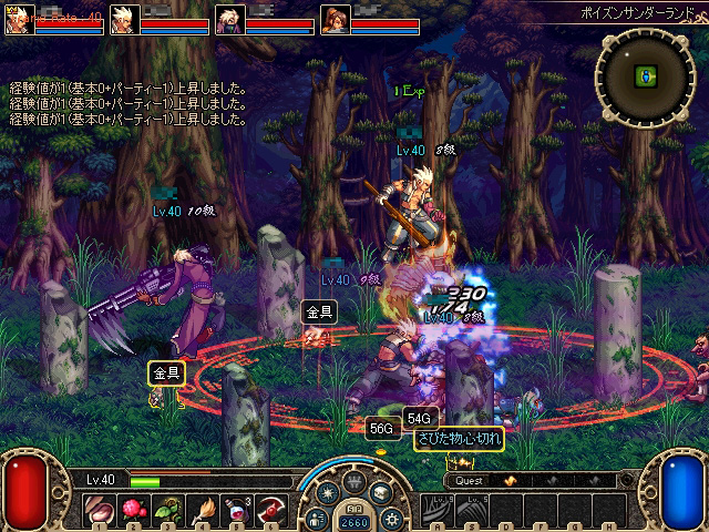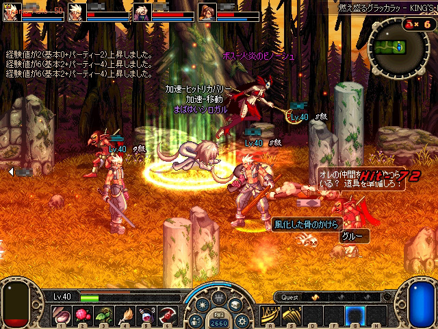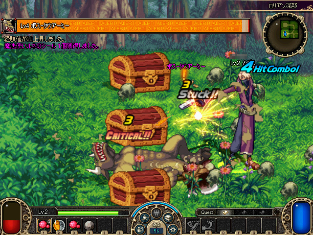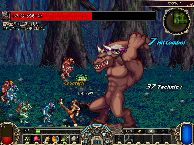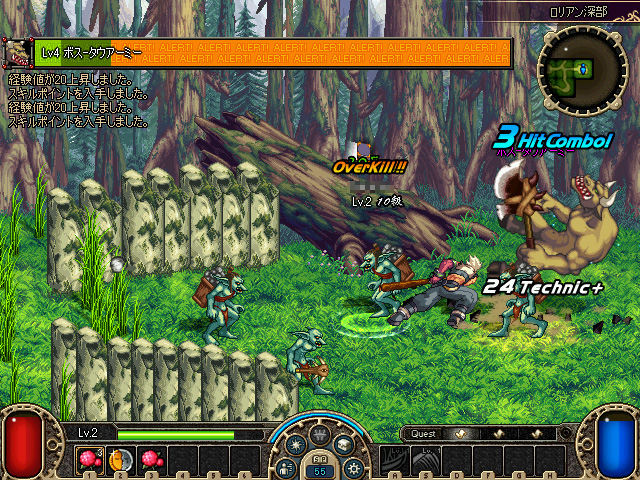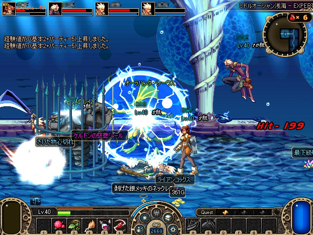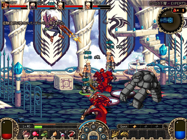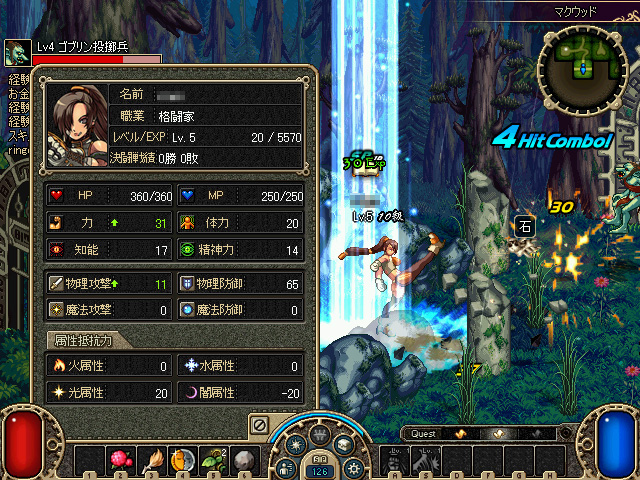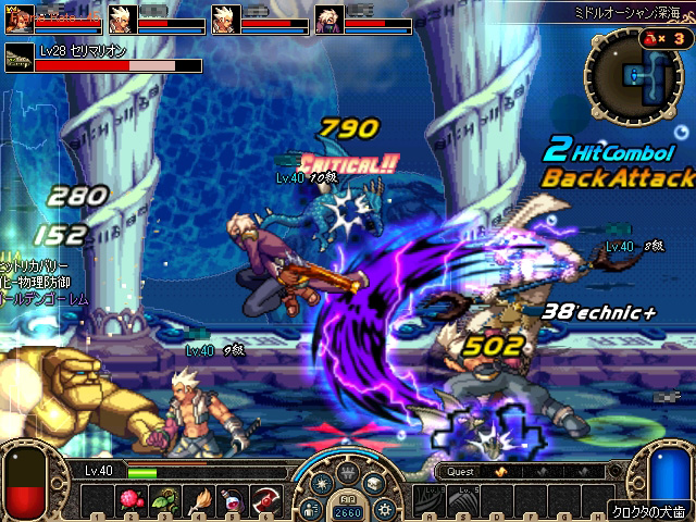 ゲーム中の基本的な操作方法は,カーソルキーで移動,「C」でジャンプ,「X」で通常攻撃,「Z」で特殊攻撃となる。さらに「1」〜「6」キーにポーションなどの消耗品,「A」「S」「D」「F」「G」「H」にスキルのショートカット登録を行える。