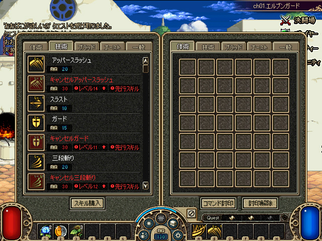 ※軽甲マスタリー (格闘家のみ) | パッシブ | 軽甲系の装備を着用時に,力とヒットリカバリーが増加する |