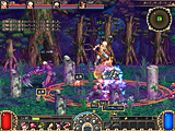 先ほども述べたが,冒険用エリアでのプレイは,ゲーセンなどで慣れ親しんだ横スクロール型のアクションゲームそのものといってよい。ステージ内には多数のモンスターがいて,これらを全滅させると,上下左右方向に隣接した別の部屋(ステージ)へと行けるようになる。そうやってエリア内を探索し,ボスモンスターを探し出して,これを無事に倒すとクリアだ。クリアすると,お金やアイテムといったクリアボーナスがもらえる。