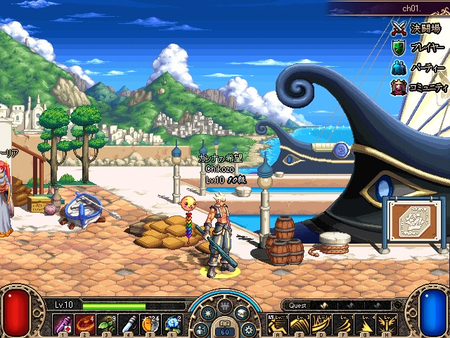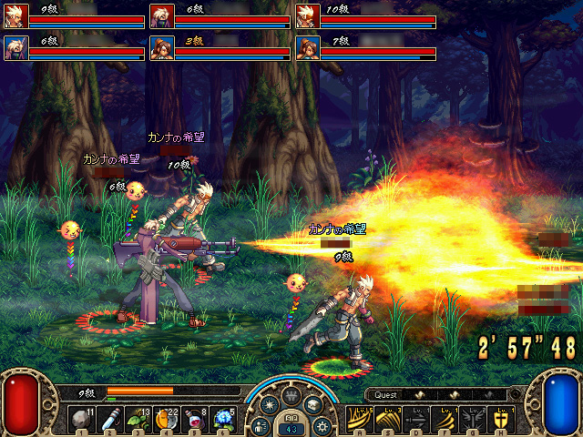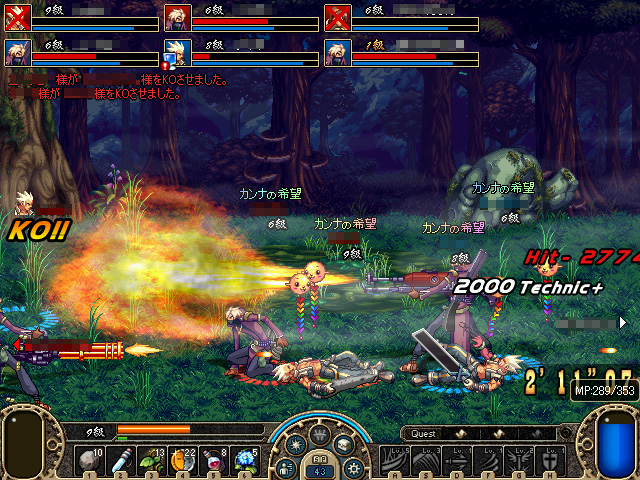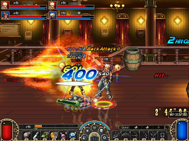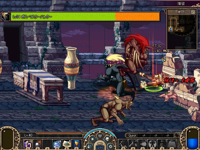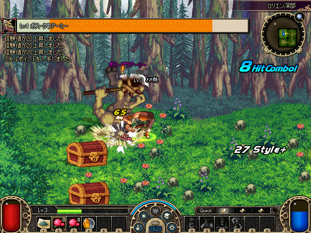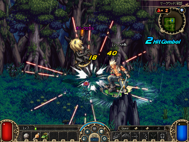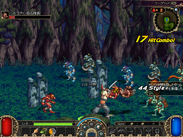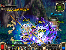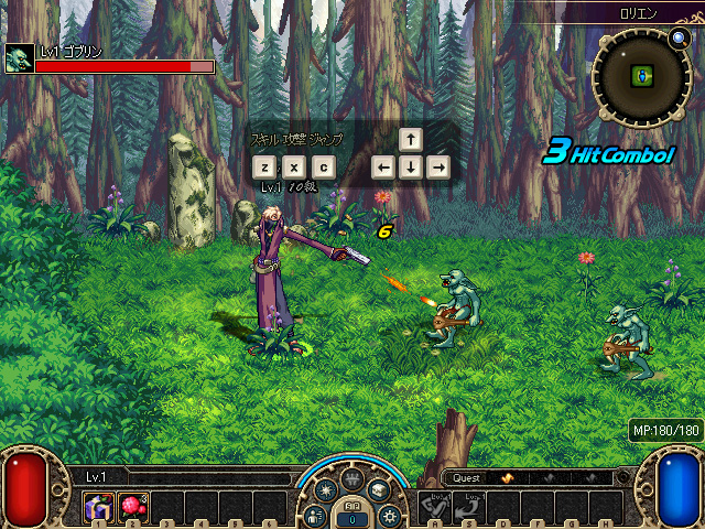 スキルの大半はコマンド入力タイプなので,ゲームは次第に格闘ゲームさながらの激しいプレイとなっていく。さらにはダウン中の敵や,空中に吹き飛んでいる敵に立て続けにスキルを叩き込む「コンボ技」といったものも多く,このへんのプレイ研究はアラド戦記で最も大きな醍醐味の一つだ。アクションゲーマーの血が流れている人であれば,クラスに応じたスキル習得とコンボの追及は,きっと大いに楽しめるはず。