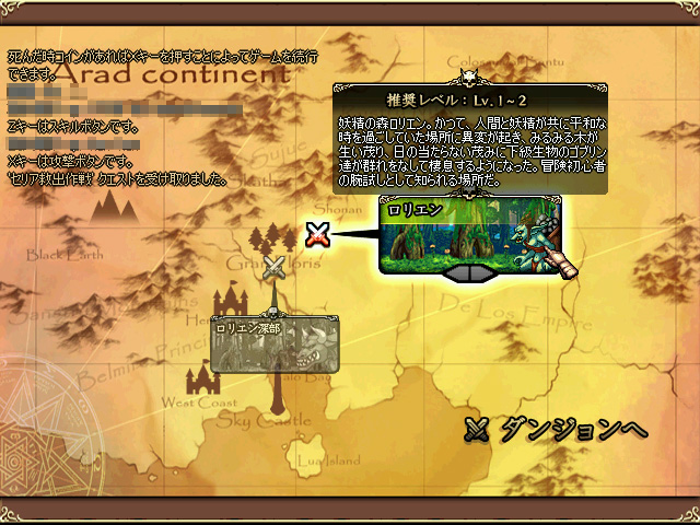 救出したセリアやライナス達に話しかけると,また新たなクエストを受けられるようになっているはずだ。このように,最初に拠点エリアでクエスト依頼を受けてから,その目的のためにダンジョンへ赴くというのが,アラド戦記の基本的なゲーム展開である。