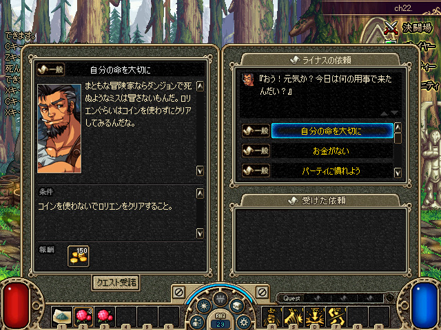 クエストがあるおかげで,ただダンジョンへ行ってモンスターを倒すよりもずっと楽しく,そして効率的にプレイを進められるのだ。ちなみに,一人のキャラクターが受けられるクエストの数は,同時に3個までなので注意してほしい。