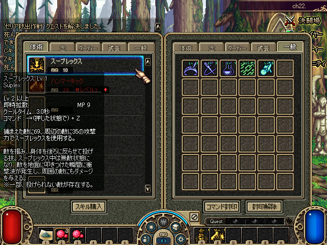 習得のプロセスは,ダンジョンを攻略することで「SP」と呼ばれるポイントを獲得できるので,これと引き換えにNPCから教わるというもの。さらにキャラクターのレベル条件を満たせば,習得済みスキルのアップグレードも可能なのだ。SPの溜まり具合については,ダンジョンを1〜2回クリアすれば新たなスキルを習得できるくらいの速いペースなので,ダンジョン攻略の楽しみの一つといってもいい。