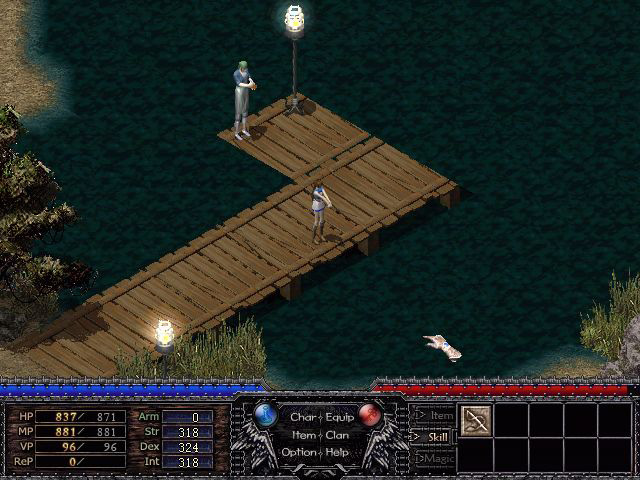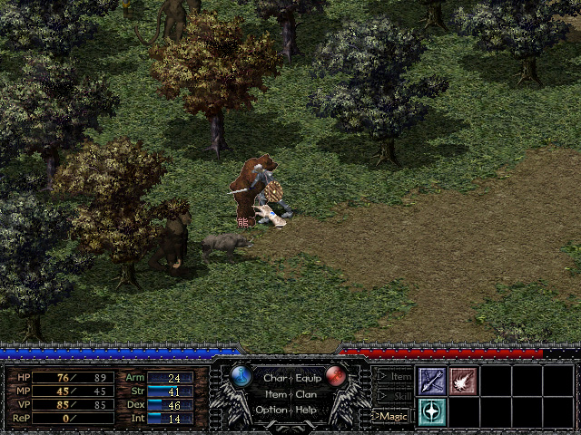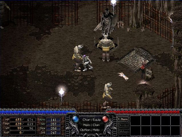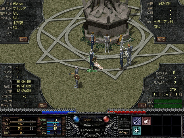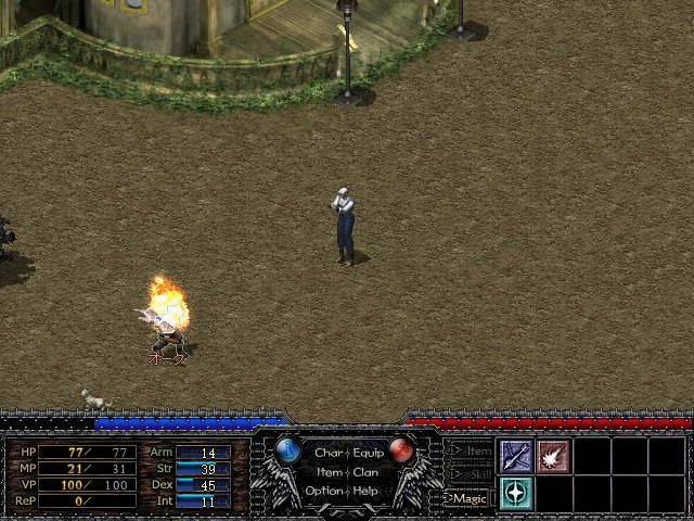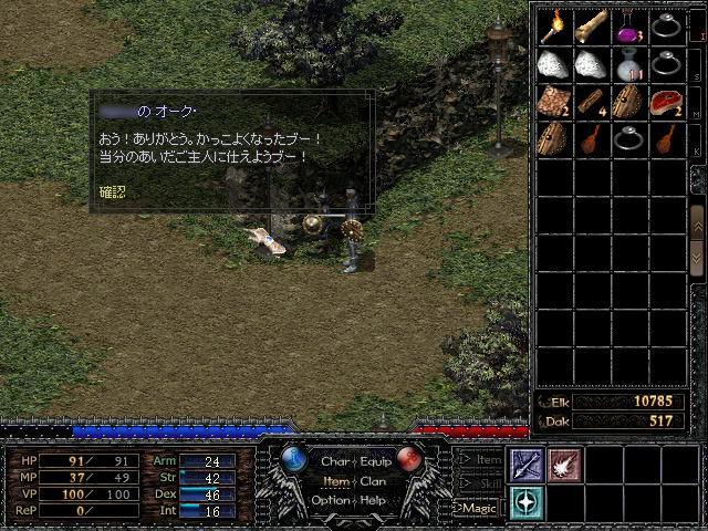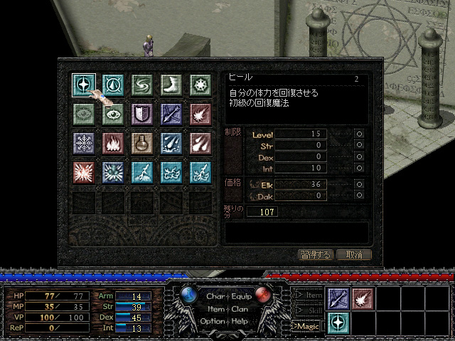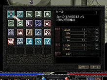 このほか重要なものとして,“Str”(腕力),“Dex”(敏捷性),そして“Int”(知力)という三つのパラメータが存在する。Strはモンスターに近接して戦闘をすることで上がり,これが上昇すれば攻撃力が高くなるほか,レベルアップ時のHP上昇率にも影響してくるのだ。