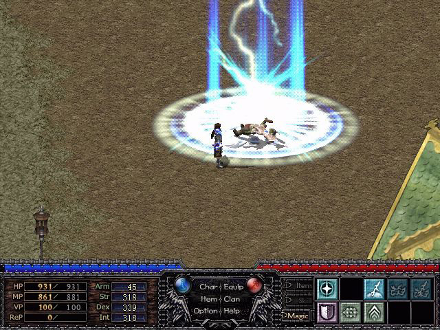 もっとも,実際にプレイしているときには,これら3種類のパラメータをことさら意識する必要はないようだ。戦闘を繰り返し,キャラクターを成長させる過程で自然に伸びていくだろう。とはいえ,アイテムの装着に関わるStrの場合,遠距離攻撃ばかりしているとこの値を上げるのが難しくなる。いけそうな相手なら積極的に近接攻撃を挑むなど,効率よいパラメータ上げもちょっとは考えたほうがよく,そこがこのゲームの攻略の面白いところでもある。