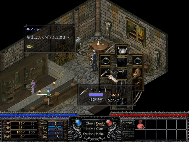 それぞれのアイテムには耐久度が存在する。減りすぎて壊れることは滅多にないが,もし壊れそうになったら鍛冶屋のティンカーのところへ持っていって修理してもらえばいい