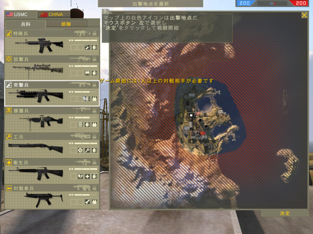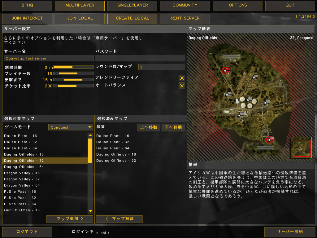 手順(11) Windowsに戻って,普通にBF2を起動。「MULTIPLAYER」を選択。サーバーリストの更新が始まるが,無視して「CREATE LOCAL」をクリックする