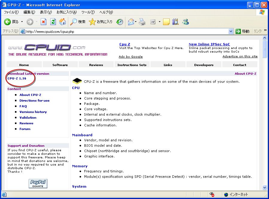 CPU-Zの配布ページにある「Download Latest version」から,CPU-Zの最新版はダウンロードできる