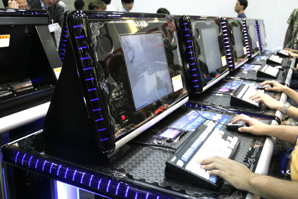ええ,あえて付けていません。これをやる前に谷波と二人で中国や韓国などのインターネットカフェを見て回ったんですが,香港でゲームセンターを運営している,あるオペレーターさんのところはヘッドホンを使ってなかったんです。