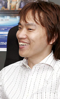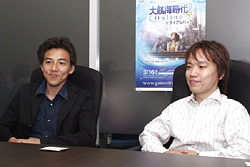| コーエー ソフトウェア事業部のマネージャーで,「大航海時代 Online」のディレクターでもある渥美貴史氏(左)。同じくマネージャーの竹田智一氏(右)は,今回のインタビューで顔出し解禁となった |