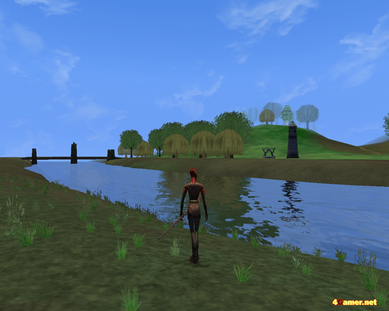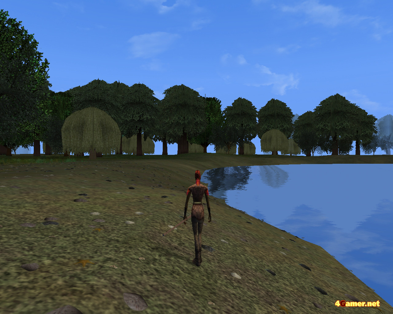 演出といえば,グラフィックスのパワーアップも特筆すべきだろう。今回からオプションにパフォーマンスの項目が追加になり,影や水などの表現力や,どの程度の距離まで描くかなどを環境に合わせて設定できるようになった。ちなみに最高画質でもそれほど高いスペックを要求されるわけではないようで,PentiumIII/866MHzとGeForce3というマシン構成であっても,かなり快適に楽しめた(オブジェクトが多いところではさすがに重くなったが)。ちなみに画質設定を最高と最低のものも掲載しておくので,ぜひとも比較してほしい。とくに水面には注目だ。ほかにも木々の描写も大幅に変更されたようで,拡張パックを導入することで,よりリアルな世界を堪能できることだろう。