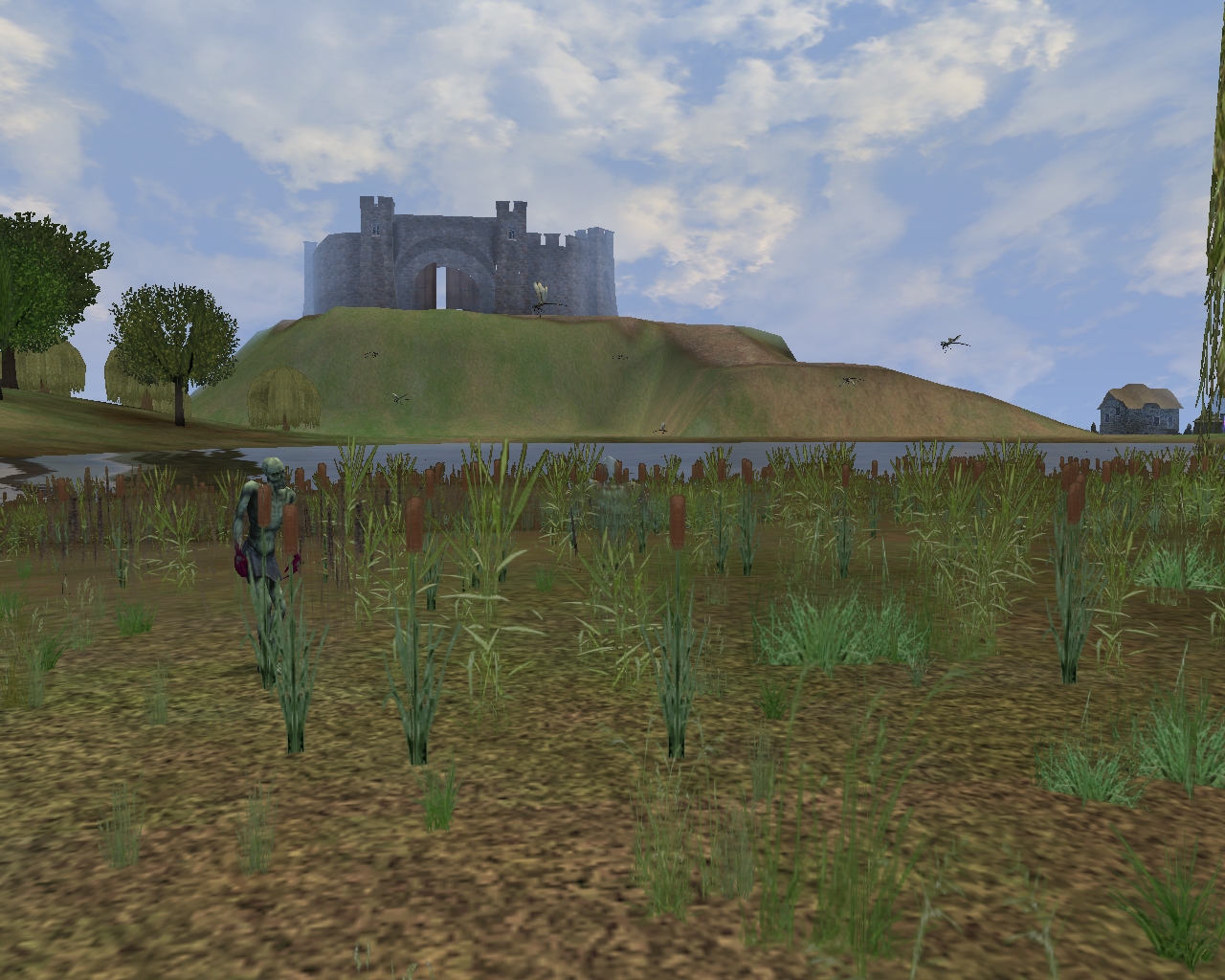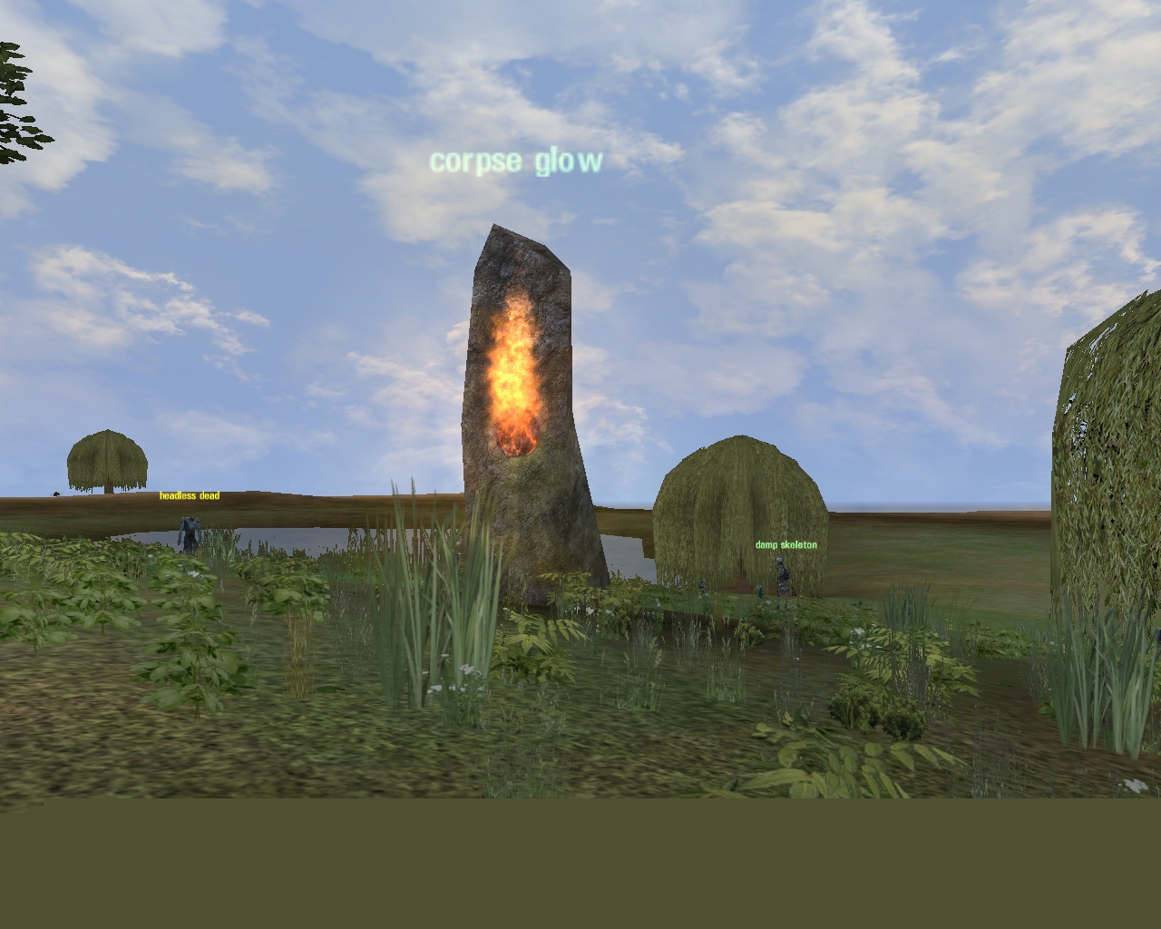 Caer Gothwaite付近で見かけたモンスターをざっと紹介しておく。付近を徘徊しているモンスターの中で面白いと感じたのが,"Lesser Water Elemental"。高度を変更しながら飛んでいて,また向こう側が透けているといったエフェクトも見事だ。ほかにも"Corpse Glow"の燃える表現なども,なかなかにいい感じであった。ぜひとも写真を見て堪能してもらいたい。