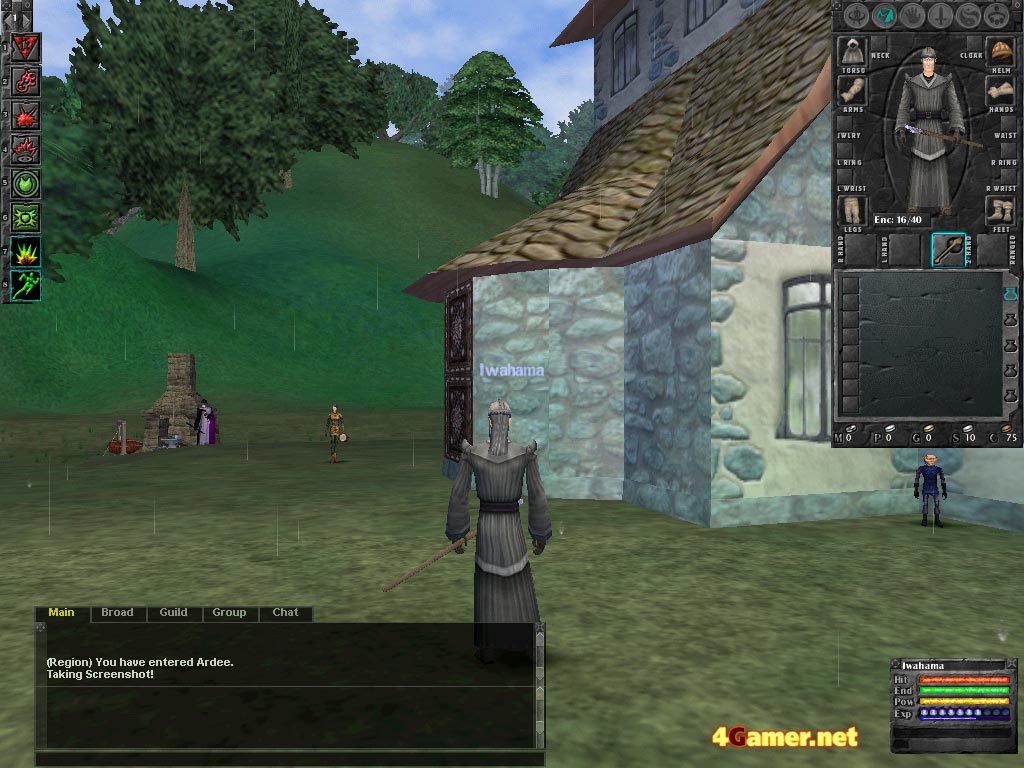 ところが,このお墓参りが大変である。何せ,自分が死んだ場所なんて覚えちゃいない。レベル4以下だったころにはペナルティもなかったので,死んだら即復活(/release)するクセがついていたためだ。「ohaka dokoda-」と叫びながら走り回っても,見つける墓は他人のものばかり。「さっきこの川べりで戦っていて,こっちに逃げて……えーっと」という言葉を心の中で唱えること数十回,職場でやっているという都合上,そろそろ周りの目が冷たくなってきたので,ここは諦めて一旦終了することに。