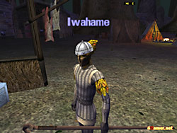 でも,何か変だ。拡張パックだから違うのは当たり前なんだが,思ったより違いが少ない。もっと劇的にグラフィックスが美しくなると思ったんだけどなぁ……。そんなこと思いつつも,とりあえず最初の町に戻って装備を整え(ヘルメットから頭がはみ出してる!)いったんゲーム終了。