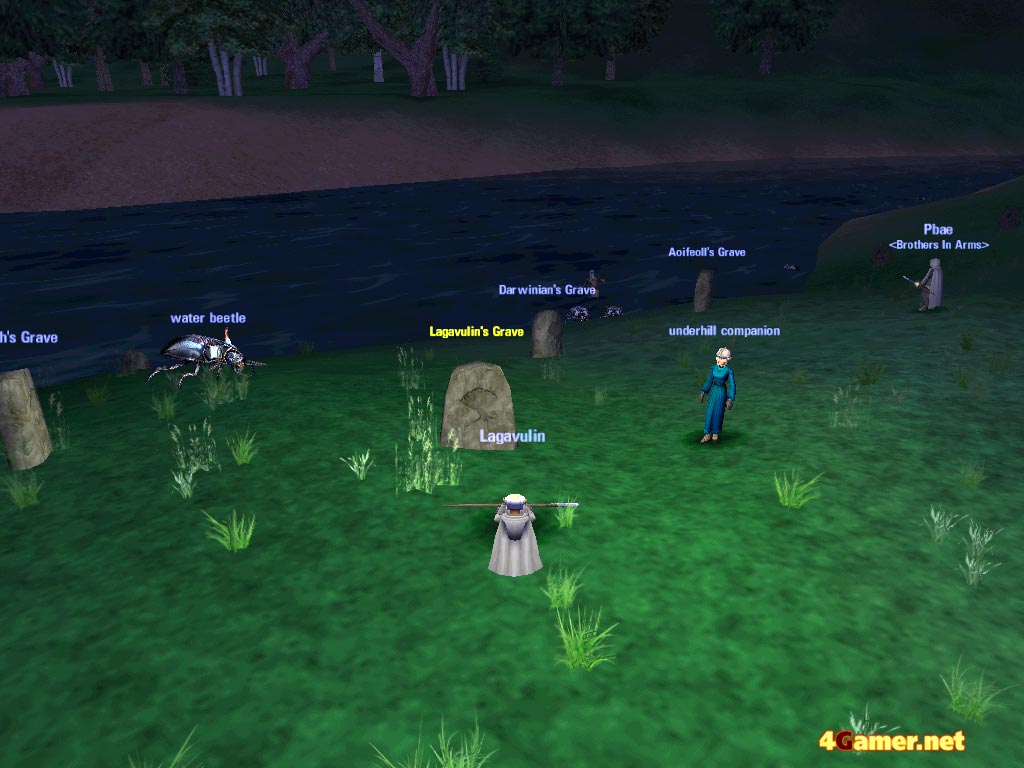 「DAoC」でプレイヤーキャラクターが死ぬと,ペナルティとして経験値が減ってしまう。/releseと入力すればキャラクターは以前に登録したバインドストーンの場所に復活。そして,さきほど死んだ場所に出来ている自分のお墓をターゲットして祈る(/pray)と,失った経験値の一部が返ってくるというシステムだ。正直私は,死んでしまっても装備を落としてしまうような厳しいペナルティが課せられていないので,経験値くらいまた稼げばいいじゃないか,と軽く考えていた。