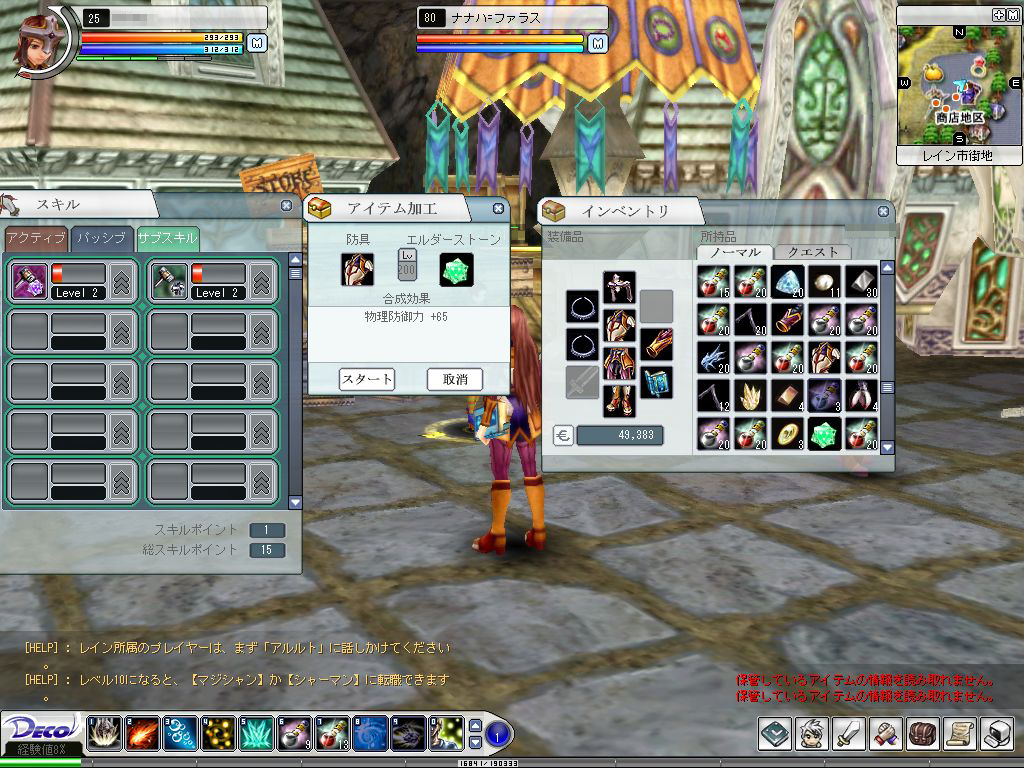 生産スキルにお金がかかるのはどのMMORPGでも同じだが,デコオンラインでは習得にも結構な投資が必要になる。アーマークラフトのサブスキルを習得するためには,NPC「ルイ=グレース」にまずは認めてもらわねばならないのだが,そのための費用は20万エルドとなかなかの額。