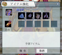 この強化システムの成功率は単なる設定数値ではなく,ミニゲームの成否で決まる。画面下段に出た色の違う三角形の組み合わせを見て,上段にバラバラに表示される三角形を時間内にすべて正しく選べばクリア,すなわち強化成功となる。